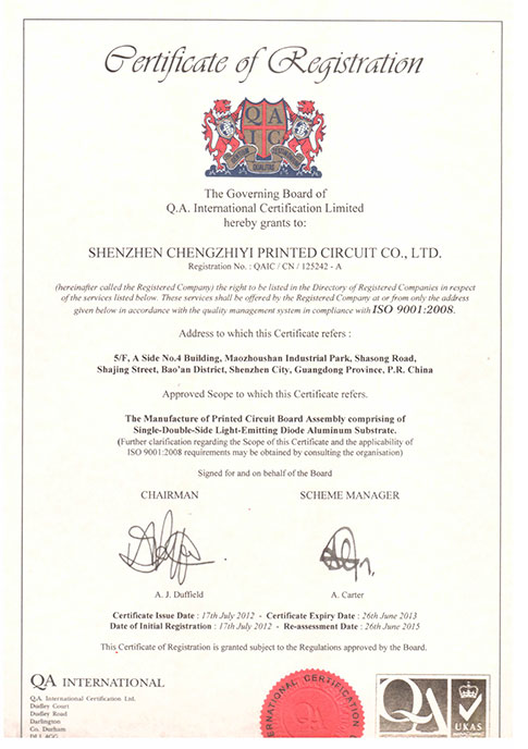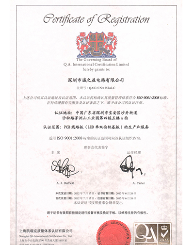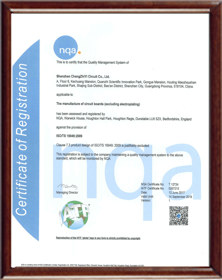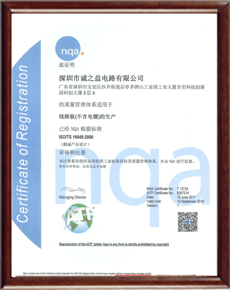 深圳誠之益電路NQA資質(zhì)證書