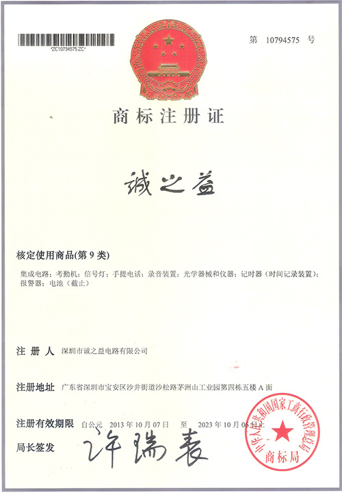 誠之益商標(biāo)中文證書