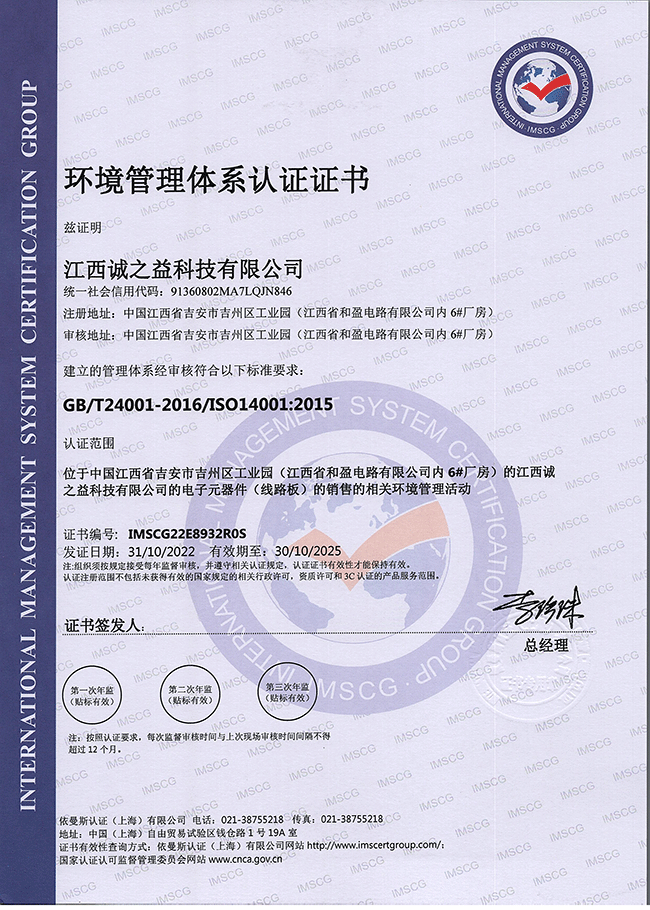 環(huán)境管理體系認(rèn)證證書